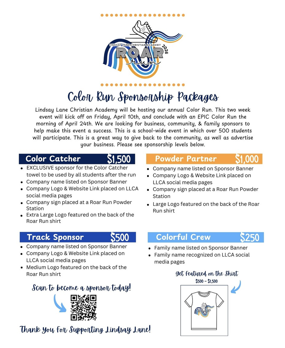 New Football Goal Posts: We are excited to introduce Varsity Football to LLCA in 2026, and what better symbolism of our community coming together to help fund this new addition than GOAL POSTS! We look forward to continuing to work together as a school community to reach big goals and support our students' success.